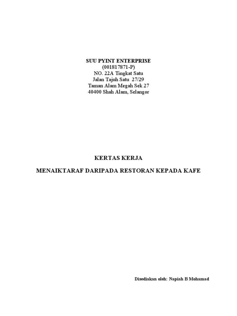 15 Contoh Surat lamaran Kerja di Cafe Restoran yang Efektif. Kertas Kerja Perniagaan Secara Umum. Jika anda tak sabar nak tengok apa yang ada.
